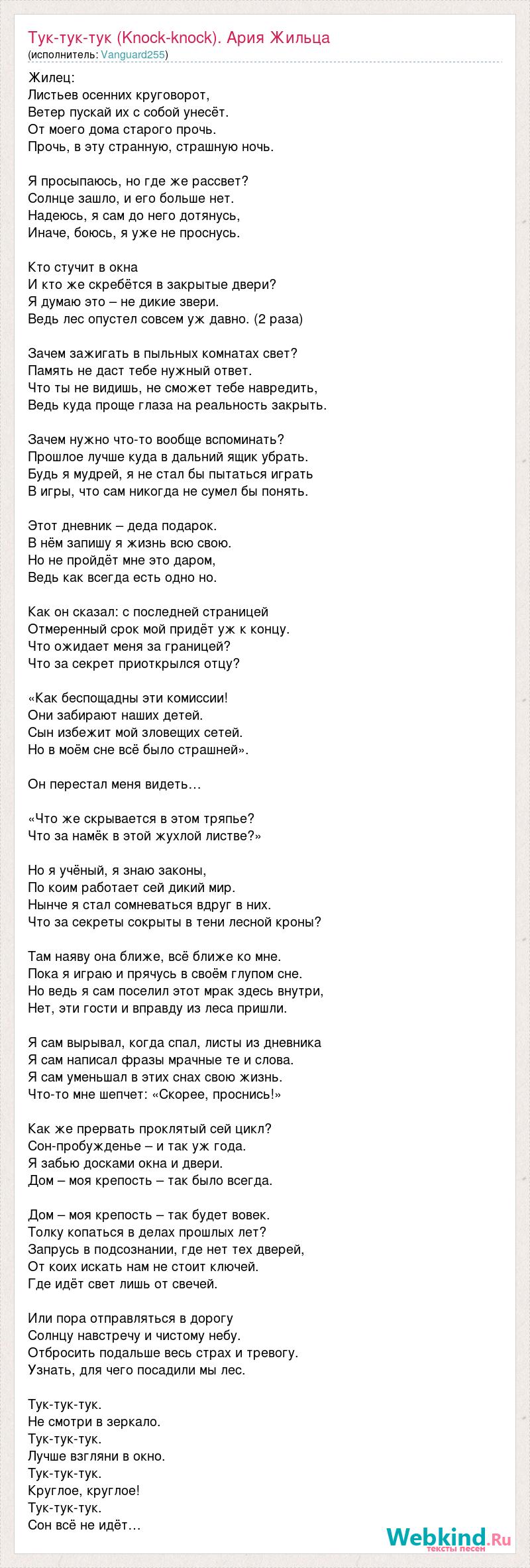 А как ты думаешь, о чем песня "Тук-тук-тук (Knock-knock). Ария Жильца" ?