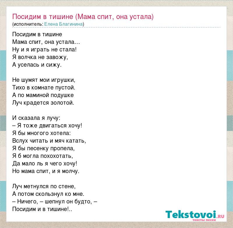 А как ты думаешь, о чем песня "Посидим в тишине (Мама спит, она устала)" ?