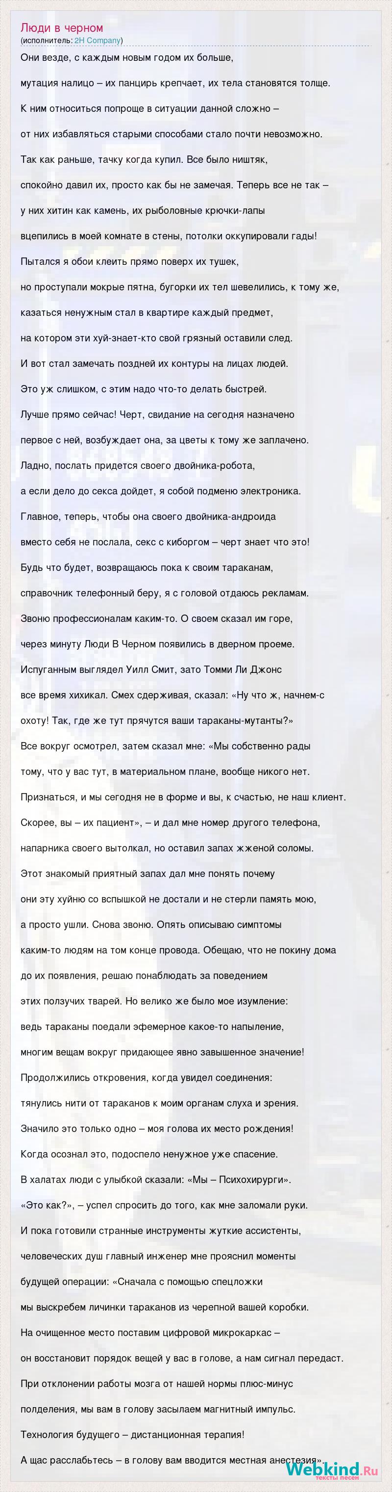 А как ты думаешь, о чем песня "Люди в черном" ?