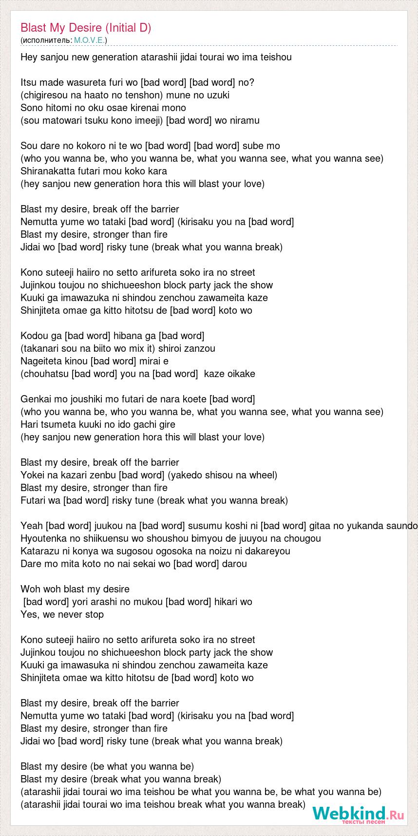 А как ты думаешь, о чем песня "Blast My Desire (Initial D)" ?