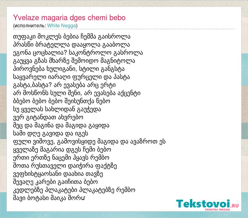 А как ты думаешь, о чем песня "Yvelaze magaria dges chemi bebo" ?