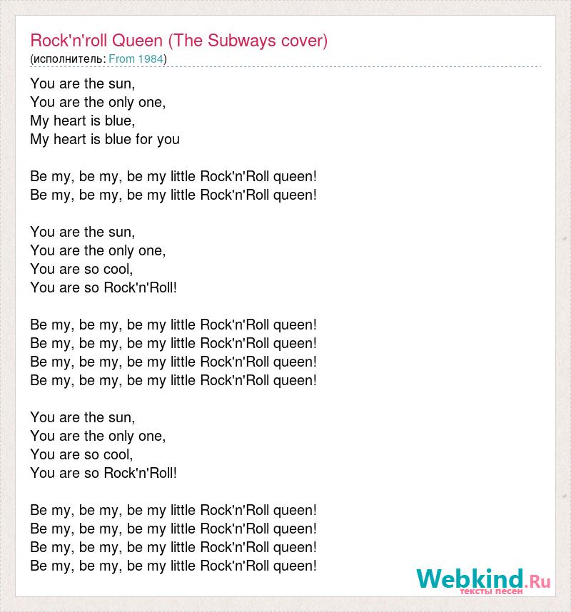You are the sun, You are the only one, My heart is blue, My heart is blue for you Be my, be my, be my little Rock'n'Roll queen! Be my, be my, be my little Rock'n'Roll queen! You are the sun, You are the only one, You are so cool, You are so Rock'n'Roll! Be my, be my, be my little Rock'n'Roll queen! Be my, be my, be my little Rock'n'Roll queen! Be my, be my, be my little Rock'n'Roll queen! Be my, be my, be my little Rock'n'Roll queen! You are the sun, You are the only one, You are so cool, You are so Rock'n'Roll! Be my, be my, be my little Rock'n'Roll queen! Be my, be my, be my little Rock'n'Roll queen! Be my, be my, be my little Rock'n'Roll queen! Be my, be my, be my little Rock'n'Roll queen!