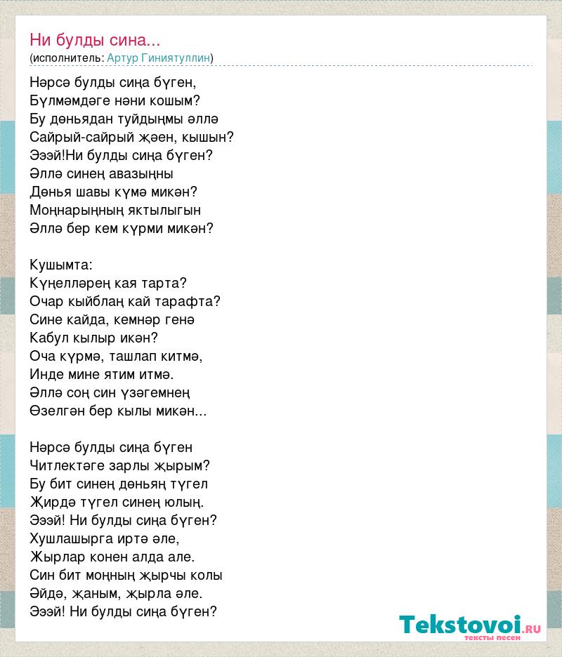 А как ты думаешь, о чем песня "Ни булды сина..." ?