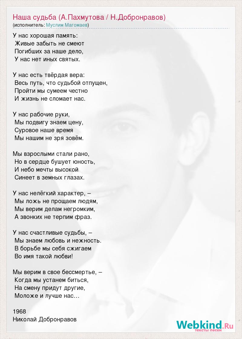 Наша судьба (А.Пахмутова / Н.Добронравов)