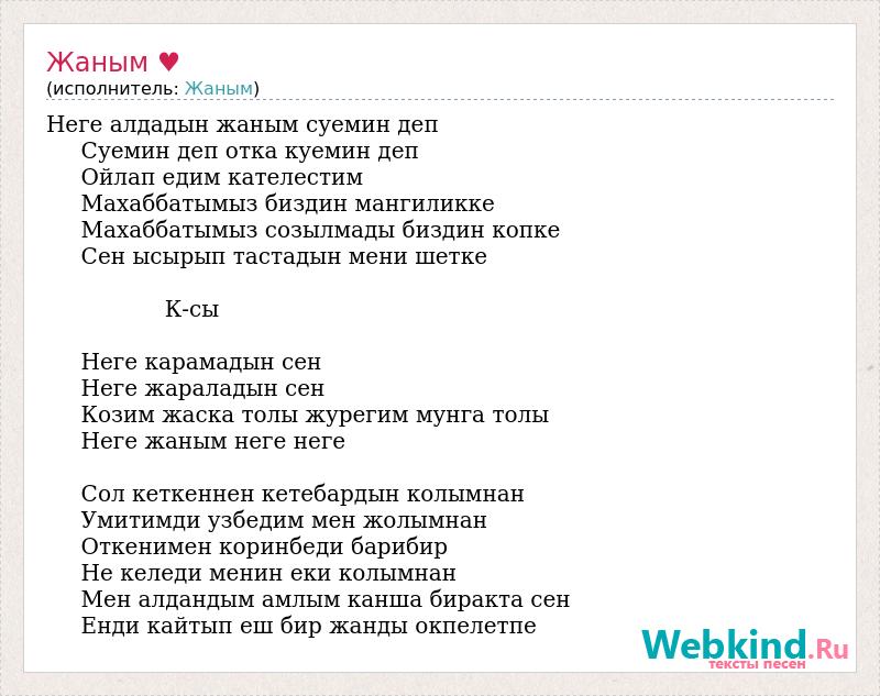 А как ты думаешь, о чем песня "Жаным ♥" ?