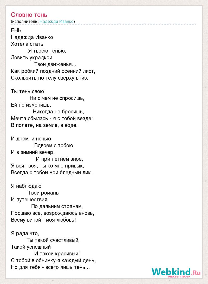 А как ты думаешь, о чем песня "Словно тень" ?