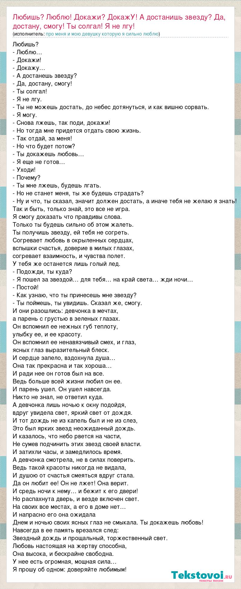 Главная→Исполнители→Про меня и мою девушку которую я сильно люблю→Любишь? Люблю! Докажи? ДокажУ! А достанишь звезду? Да, достану, смогу! Ты с
