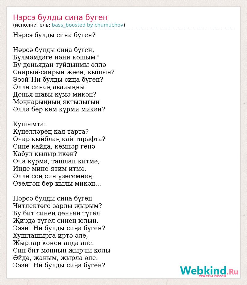 А как ты думаешь, о чем песня "Нэрсэ булды сина буген" ?