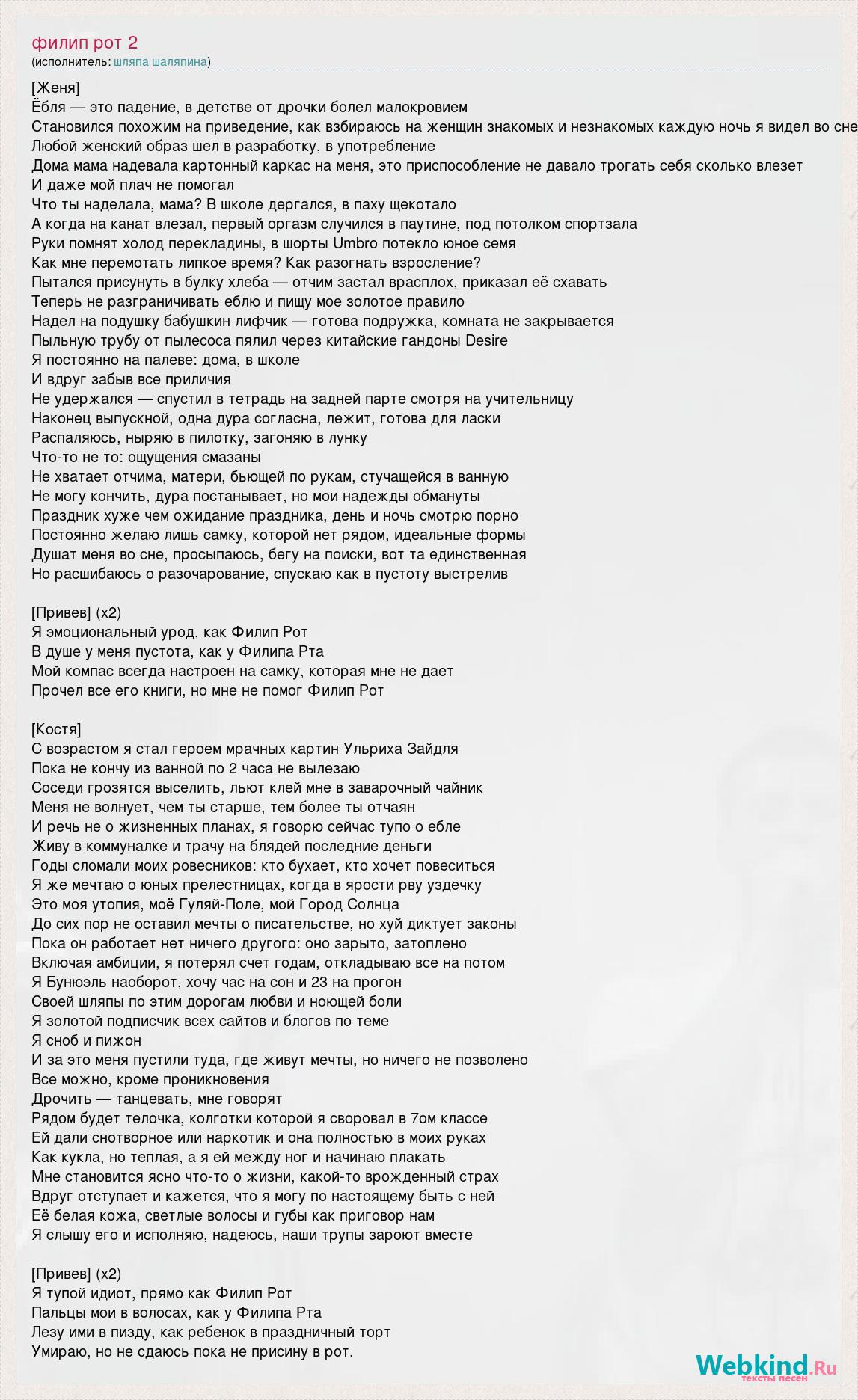 А как ты думаешь, о чем песня "Филип рот 2" ?