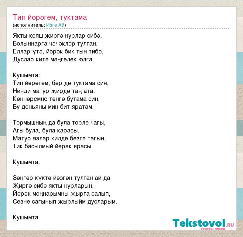 А как ты думаешь, о чем песня "Тип йөрәгем, туктама" ?