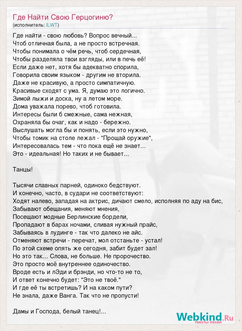 А как ты думаешь, о чем песня "Где Найти Свою Герцогиню?" ?