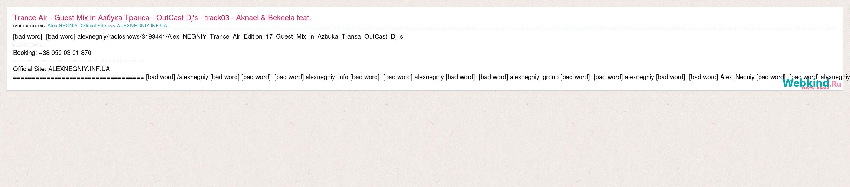Главная→Исполнители→Alex NEGNIY (Official Site:>>> ALEXNEGNIY.INF.UA→Trance Air - Guest Mix in Азбука Транса - OutCast Dj's - track03 - Aknael