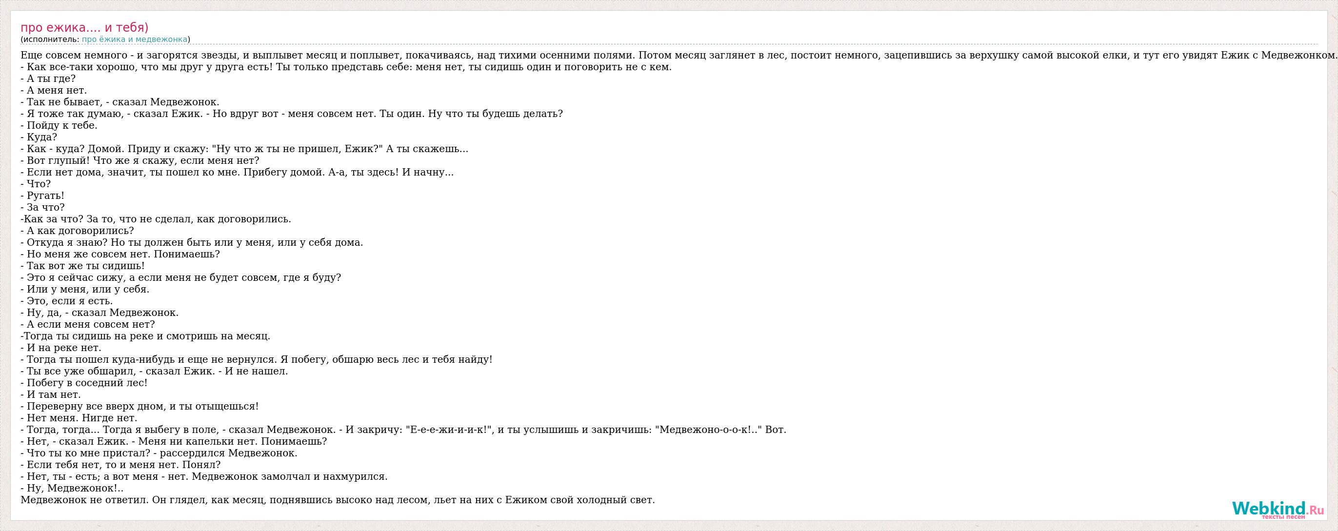 А как ты думаешь, о чем песня "Про ежика.... и тебя)" ?