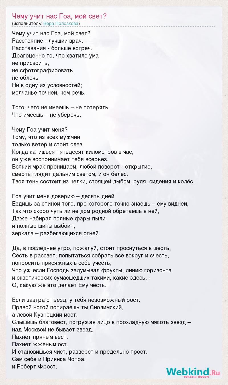 А как ты думаешь, о чем песня "Чему учит нас Гоа, мой свет?" ?