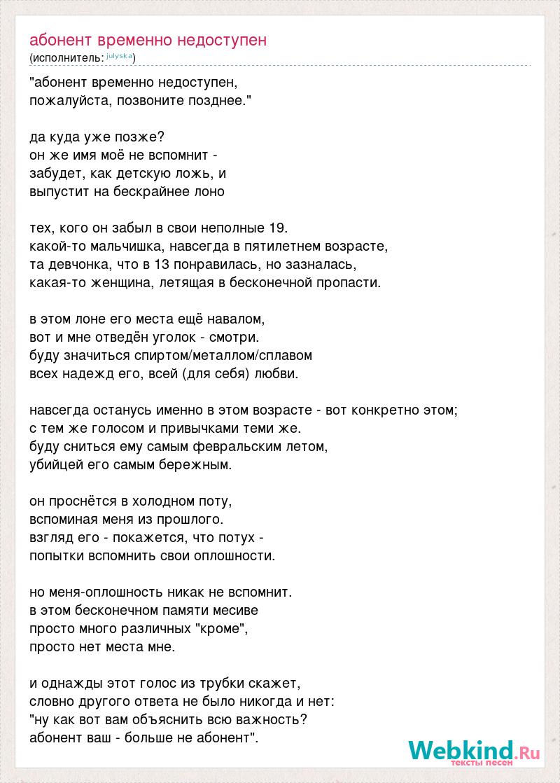А как ты думаешь, о чем песня "Абонент временно недоступен" ?