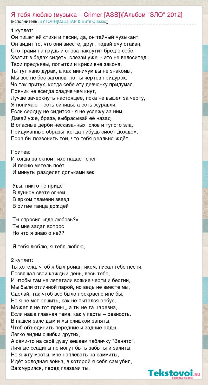 Главная→Исполнители→ВУТОНН[Саша rAP & Витя Classic]→Я тебя люблю (музыка – Crimer [ASB])[Альбом "ЗЛО" 2012]