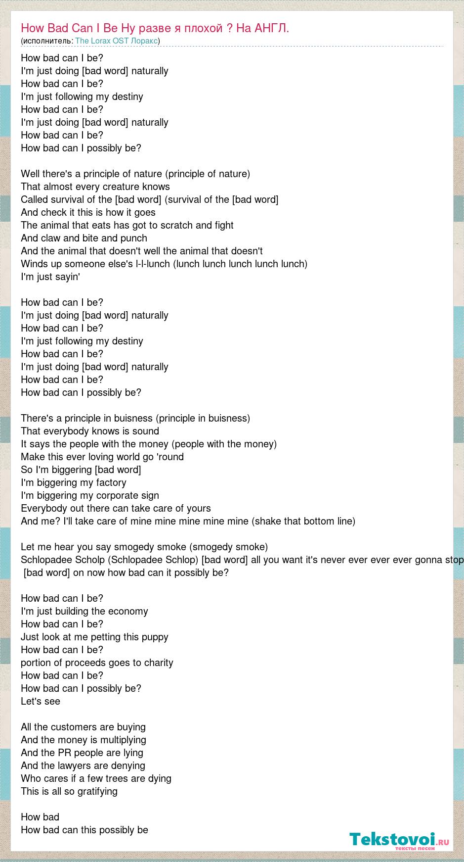 How Bad Can I Be Ну разве я плохой ? На АНГЛ.