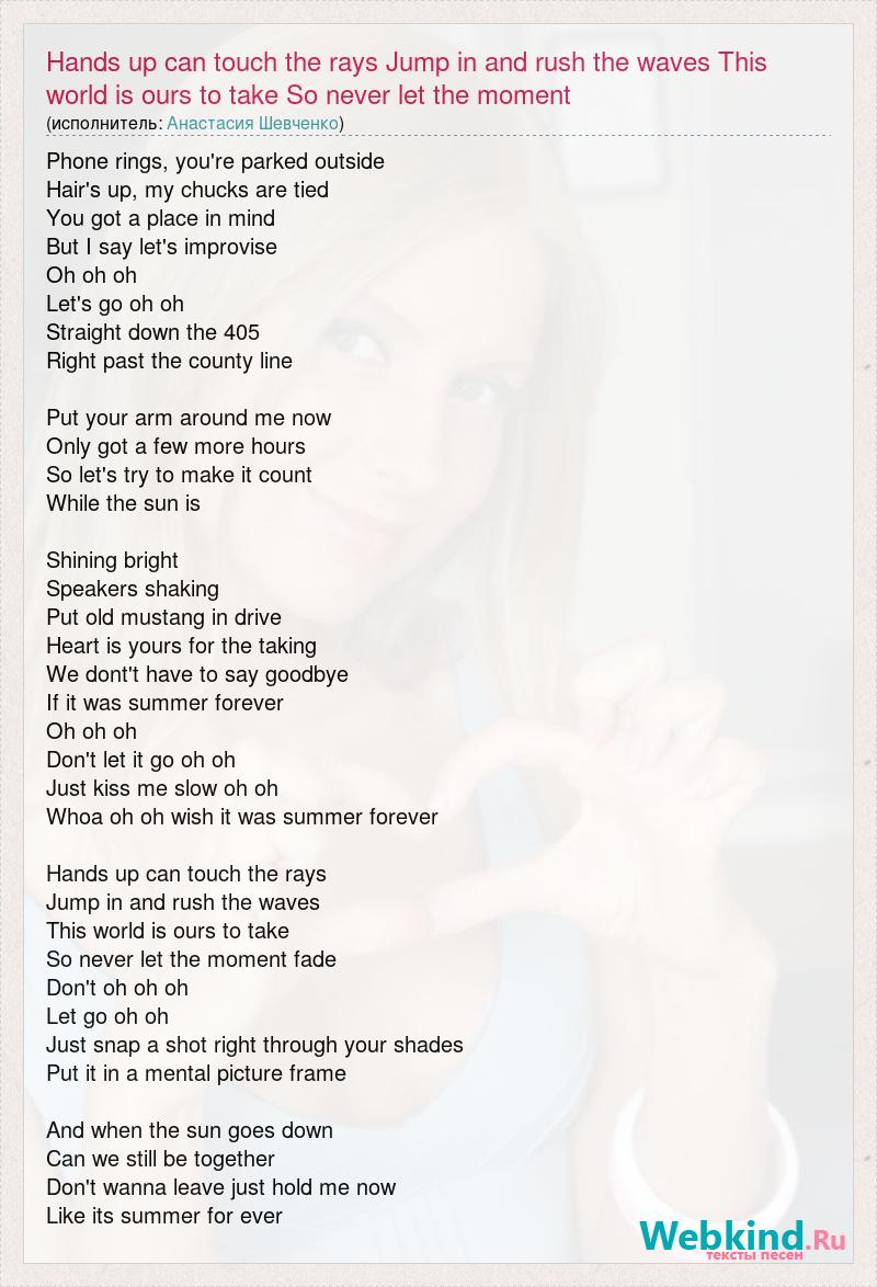 Главная→Исполнители→Анастасия Шевченко→Hands up can touch the rays Jump in and rush the waves This world is