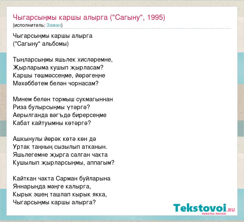А как ты думаешь, о чем песня "Чыгарсыңмы каршы алырга ("Сагыну", 1995)" ?