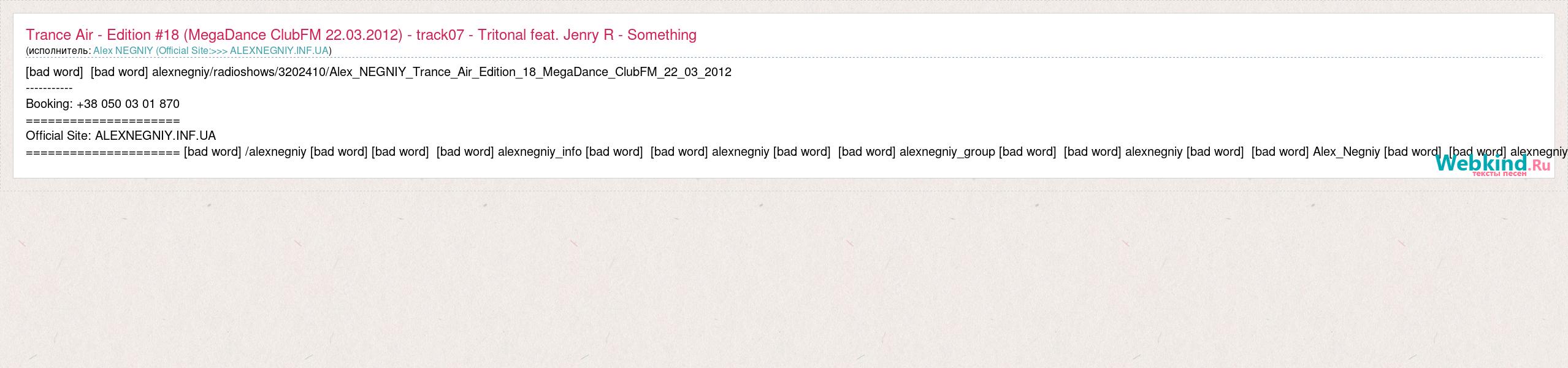 [bad word] [bad word] alexnegniy/radioshows/3202410/Alex_NEGNIY_Trance_Air_Edition_18_MegaDance_ClubFM_22_03_2012 ----------- Booking: +38 050 03 01 870 ===================== Official Site: ALEXNEGNIY.INF.UA ===================== [bad word] /alexnegniy [bad word] [bad word] [bad word] alexnegniy_info [bad word] [bad word] alexnegniy [bad word] [bad word] alexnegniy_group [bad word] [bad word] alexnegniy [bad word] [bad word] Alex_Negniy [bad word] [bad word] alexnegniy