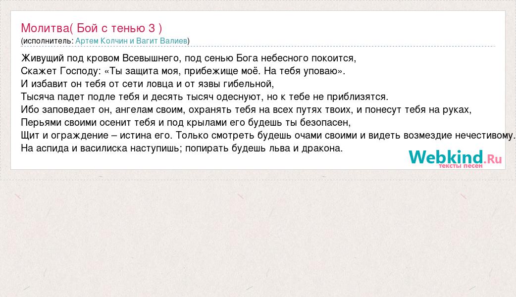 А как ты думаешь, о чем песня "Молитва( Бой с тенью 3 )" ?