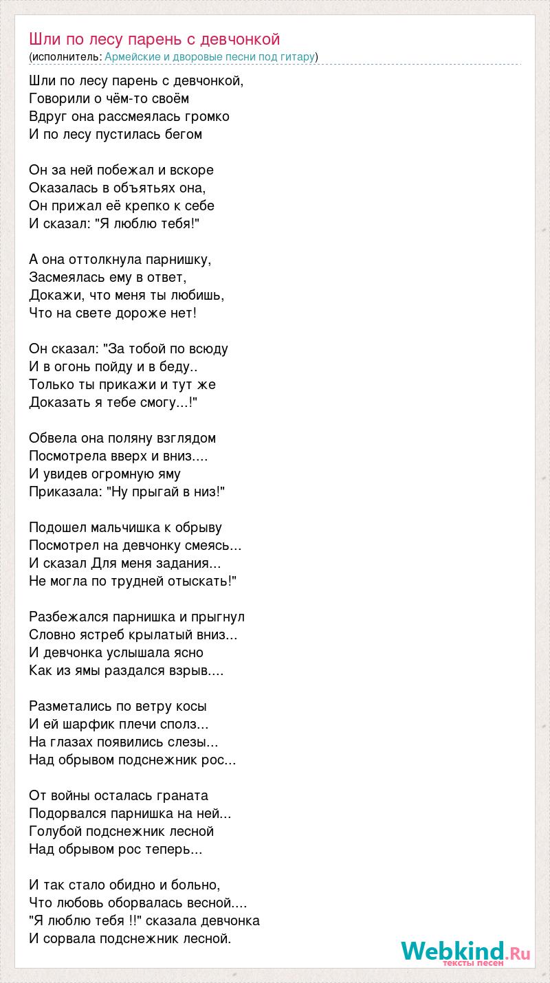 А как ты думаешь, о чем песня "Шли по лесу парень с девчонкой" ?
