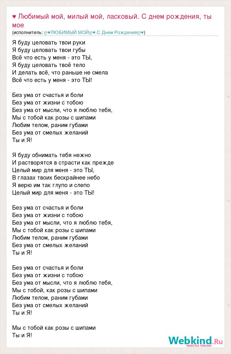 Главная→Исполнители→ღ♥ЛЮБИМЫЙ МОЙღ♥.С Днем Рожденияღ♥→♥ Любимый мой, милый мой, ласковый. С днем рождения, ты мое солнышко ясное.