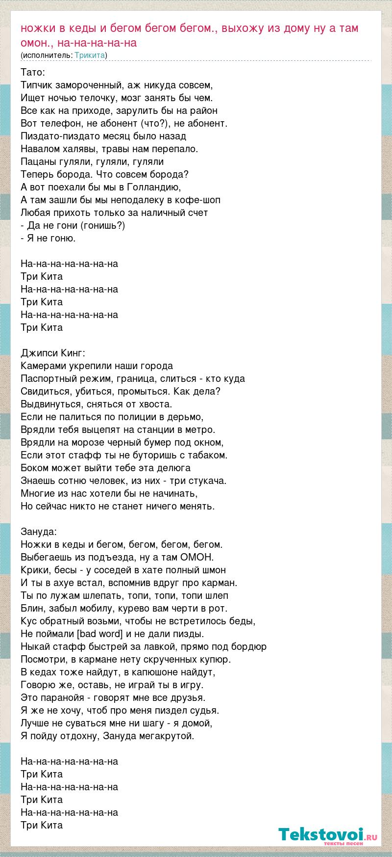 Главная→Исполнители→Трикита→Ножки в кеды и бегом бегом бегом., выхожу из дому ну а там омон., на-на-н
