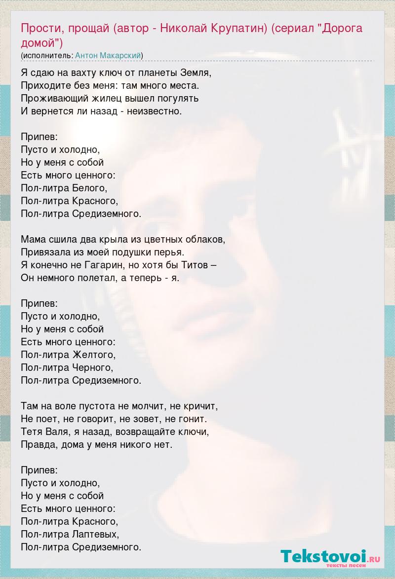 Прости, прощай (автор - Николай Крупатин) (сериал "Дорога домой")