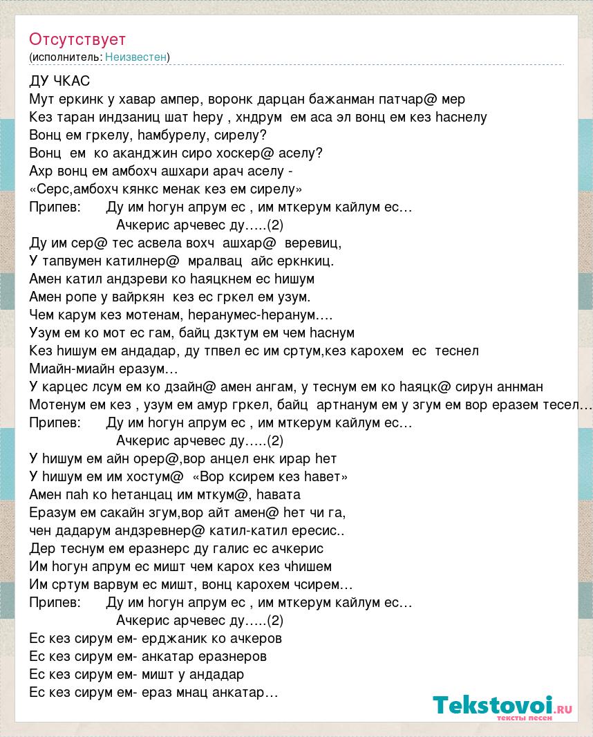 Припев: Ду им hогун апрум ес , им мткерум кайлум ес…