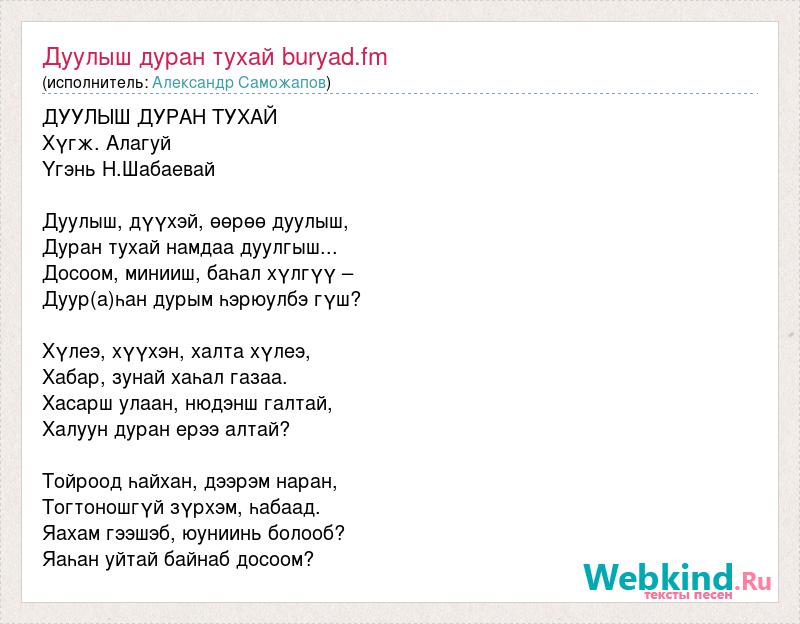 Дуулыш дуран тухай buryad.fm