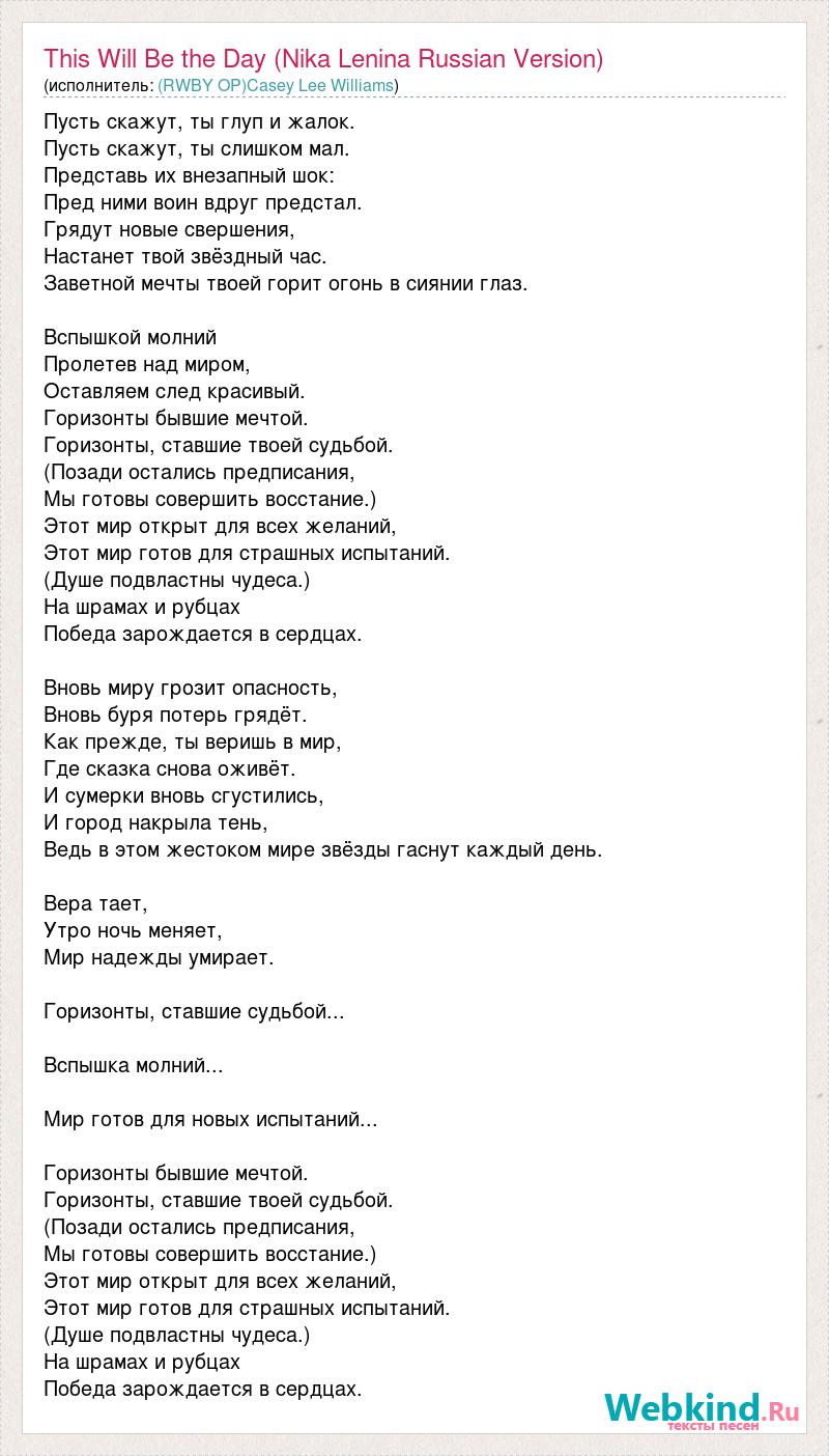 This Will Be the Day (Nika Lenina Russian Version)