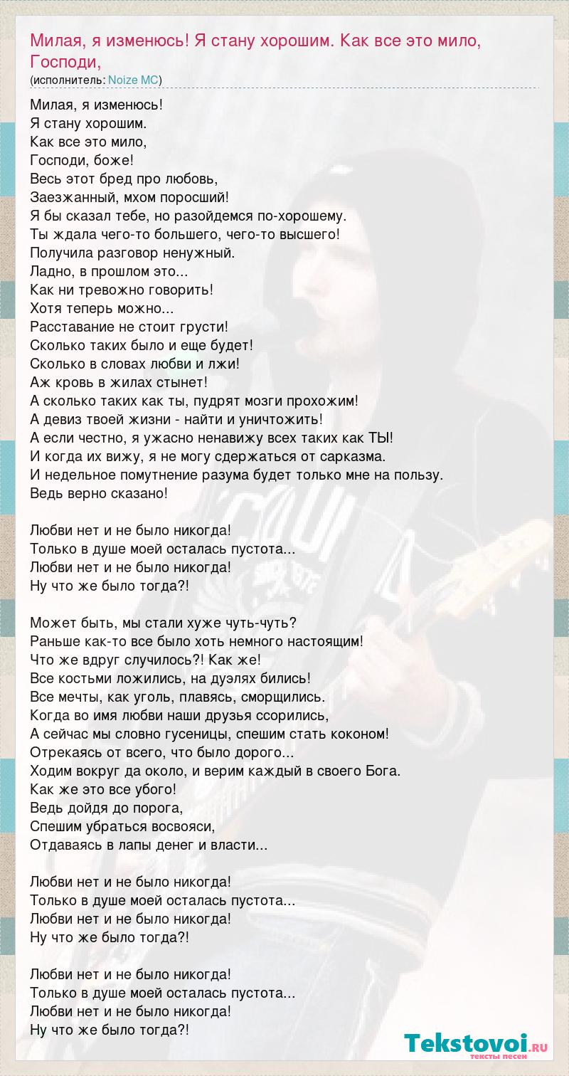 Главная→Исполнители→Noize MC→Милая, я изменюсь! Я стану хорошим. Как все это мило, Господи, боже! Весь эт