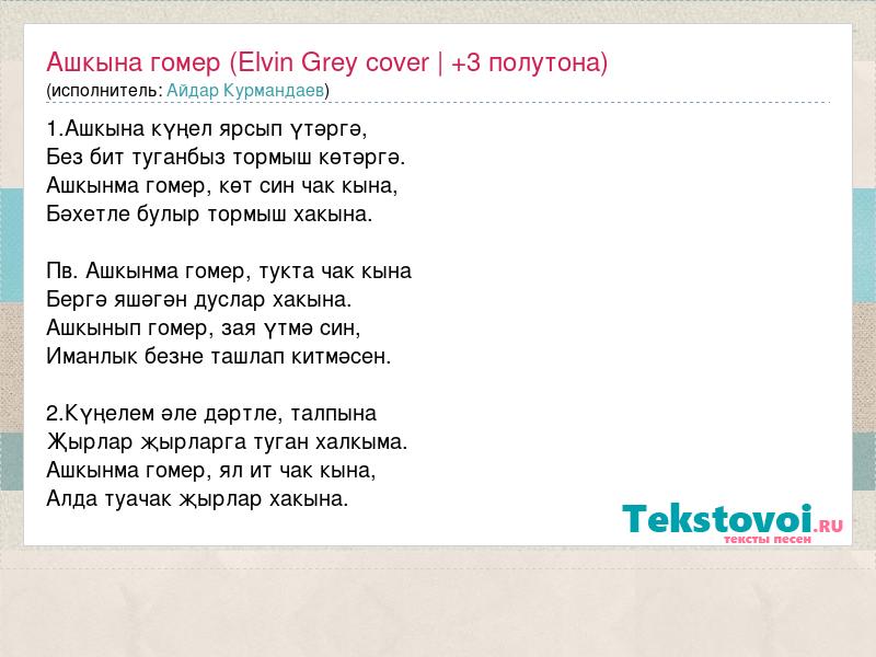 Ашкына гомер (Elvin Grey cover | +3 полутона)