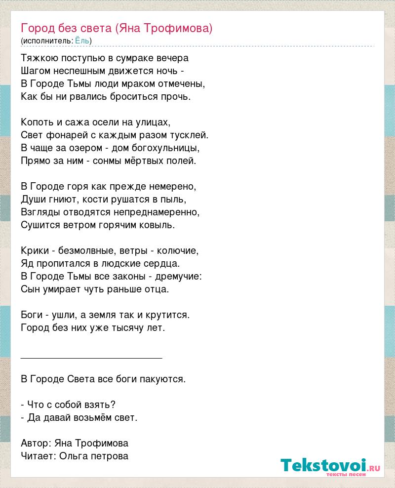 А как ты думаешь, о чем песня "Город без света (Яна Трофимова)" ?