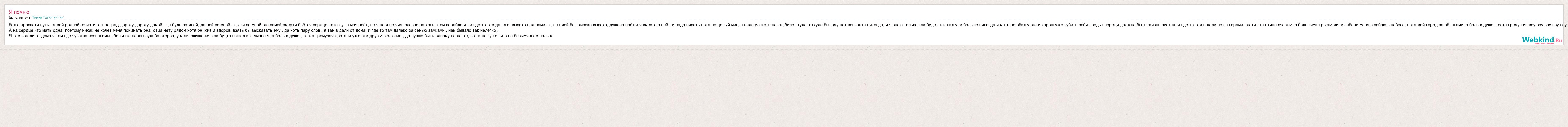 боже просвети путь , а мой родной, очисти от преград дорогу дорогу домой , да будь со мной, да пой со мной , дыши со мной, до самой смерти бьётся сердце , это душа моя поёт, не я не я не яяя, словно на крылатом корабле я , и где то там далеко, высоко над нами , да ты мой бог высоко высоко, душааа поёт и я вместе с ней , и надо писать пока не целый миг, а надо улететь назад билет туда, откуда былому нет возврата никогда, и я знаю только так будет так вижу, и больше никогда я мать не обижу, да и харош уже губить себя , ведь впереди должна быть жизнь чистая, и где то там в дали не за горами , летит та птица счастья с большими крыльями, и забери меня с собою в небеса, пока мой город за облаками, а боль в душе, тоска гремучая, воу воу воу воу воу А на сердце что мать одна, поэтому никак не хочет меня понимать она, отца нету рядом хотя он жив и здоров, взять бы высказать ему , да хоть пару слов , я там в дали от дома, и где то там далеко за семью замками , нам бывало так нелегко , Я там в дали от дома я там где чувства незнакомы , больные нервы судьба стерва, у меня ощущения как будто вышел из тумана я, а боль в душе , тоска гремучая достали уже эти друзья колючие , да лучше быть одному на легке, вот и ношу кольцо на безымянном пальце