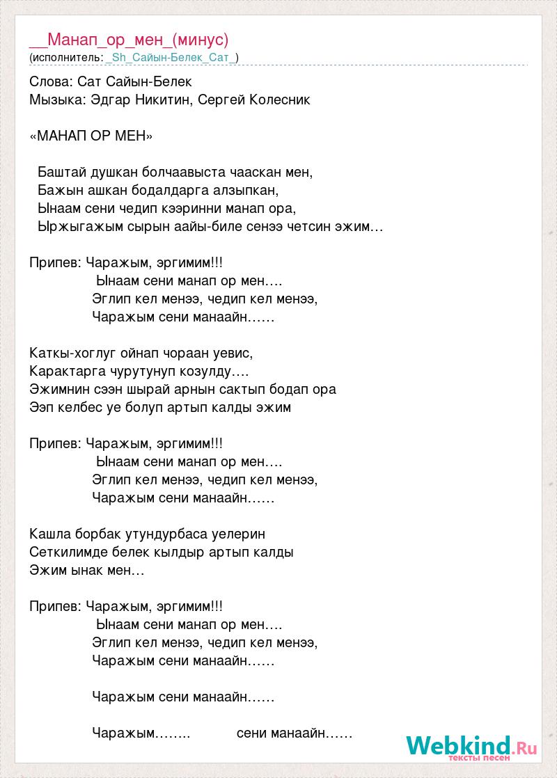 Ынаам сени манап ор мен….