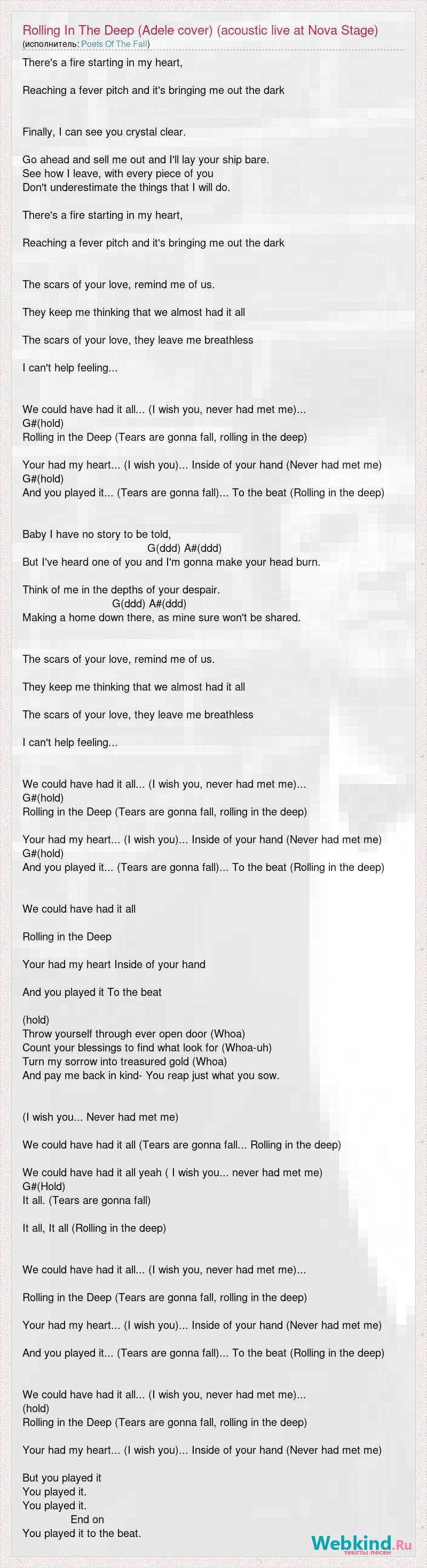 А как ты думаешь, о чем песня "Rolling In The Deep (Adele cover) (acoustic live at Nova Stage)" ?