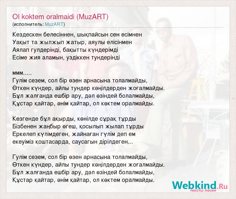 А как ты думаешь, о чем песня "Ol koktem oralmaidi (MuzART)" ?