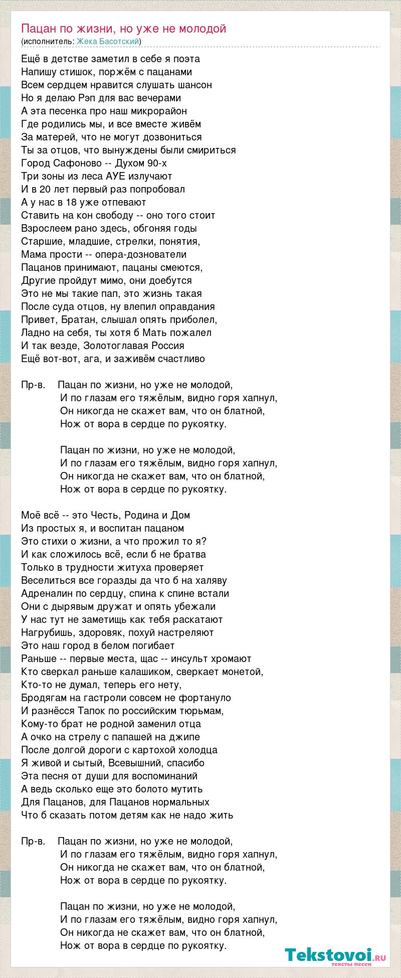 А как ты думаешь, о чем песня "Пацан по жизни, но уже не молодой" ?