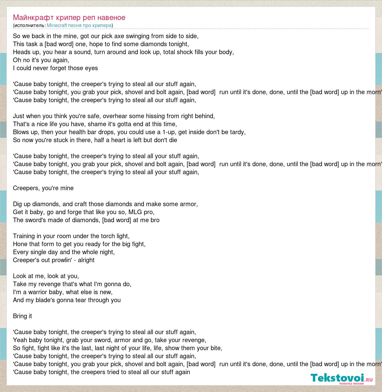 А как ты думаешь, о чем песня "Майнкрафт крипер реп навеное" ?