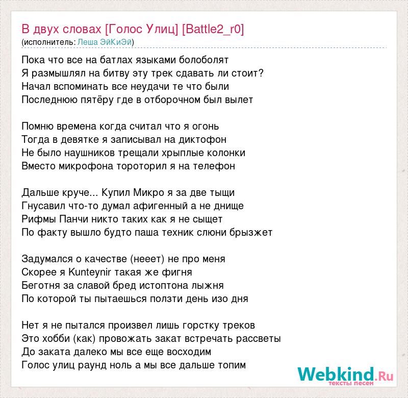 А как ты думаешь, о чем песня "В двух словах [Голос Улиц] [Battle2_r0]" ?