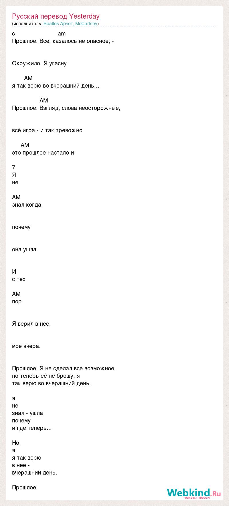 Русский перевод Yesterday