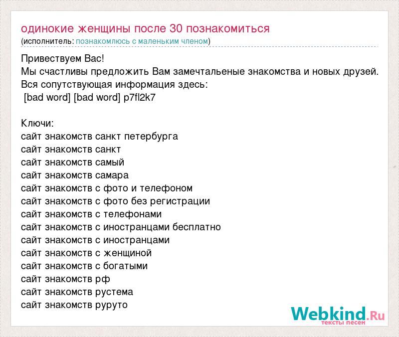 А как ты думаешь, о чем песня "Одинокие женщины после 30 познакомиться" ?