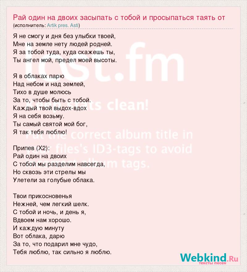 Главная→Исполнители→Artik pres. Asti→Рай один на двоих засыпать с тобой и просыпаться таять от любви в твоих руках