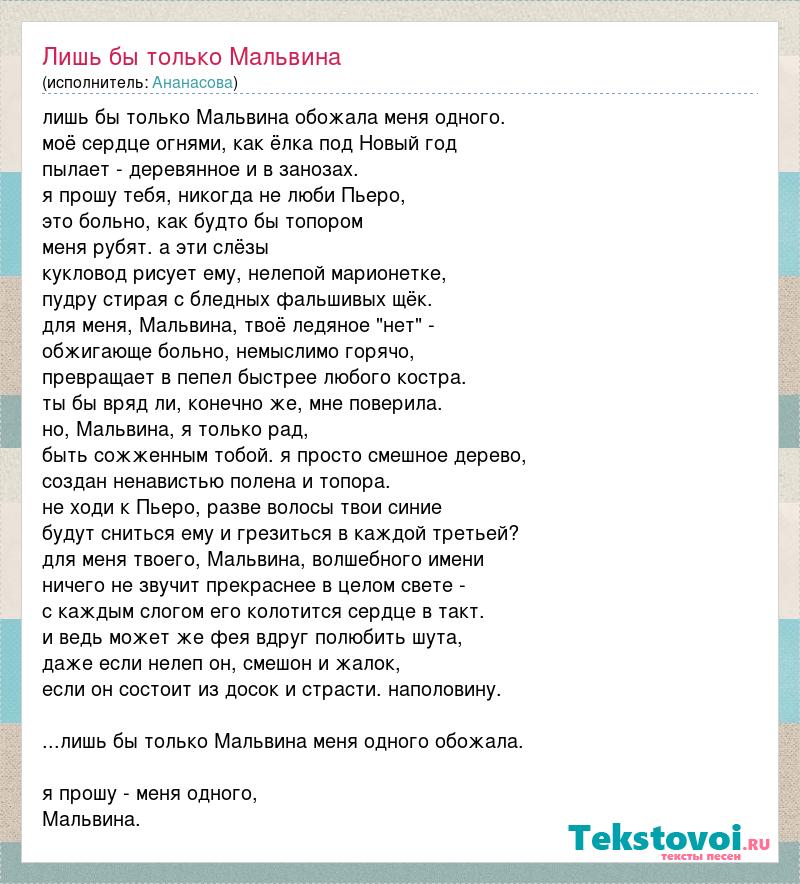 А как ты думаешь, о чем песня "Лишь бы только Мальвина" ?