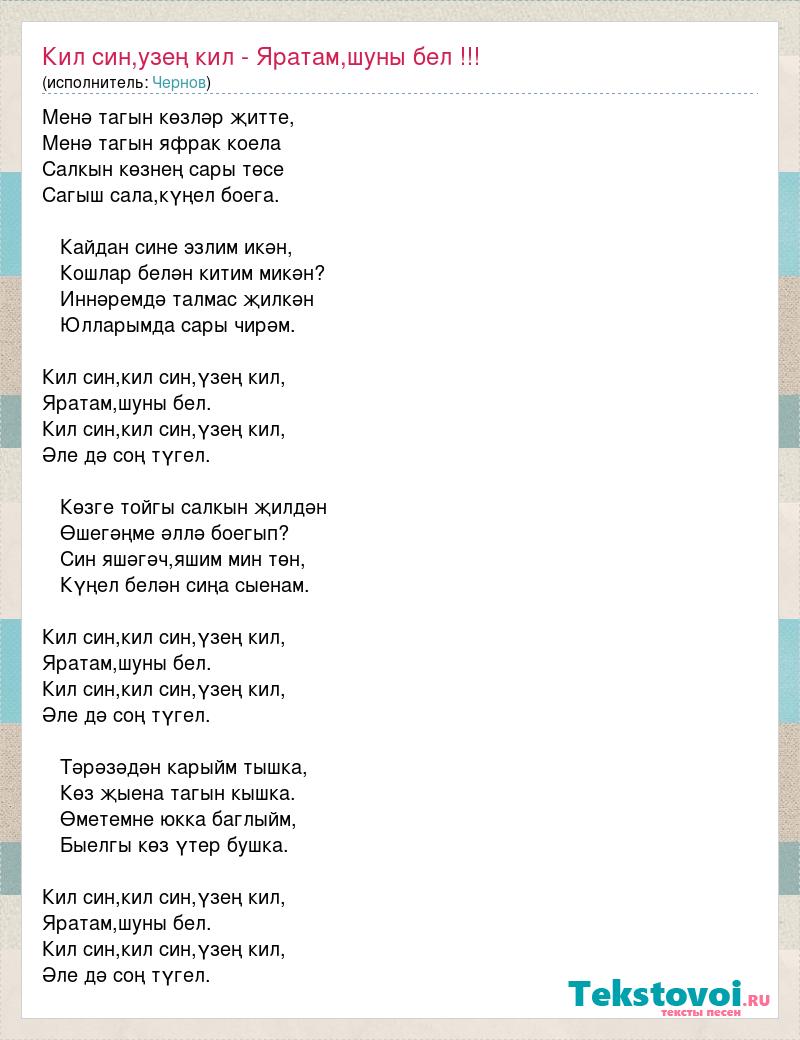 А как ты думаешь, о чем песня "Кил син,узең кил - Яратам,шуны бел !!!" ?