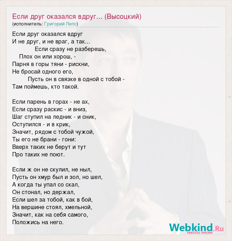 А как ты думаешь, о чем песня "Если друг оказался вдруг... (Высоцкий)" ?