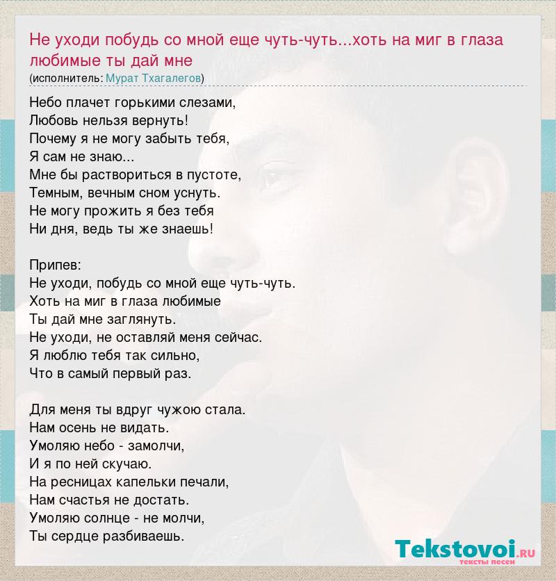 Главная→Исполнители→Мурат Тхагалегов→Не уходи побудь со мной еще чуть-чуть...хоть на миг в глаза любимые ты дай мне