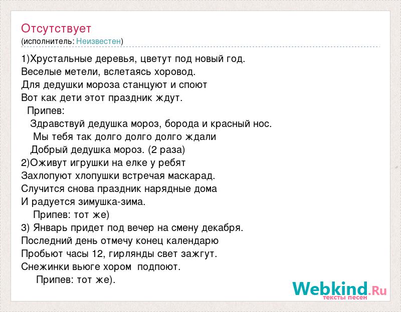 А как ты думаешь, о чем песня "1)Хрустальные деревья, цветут под новый год." ?